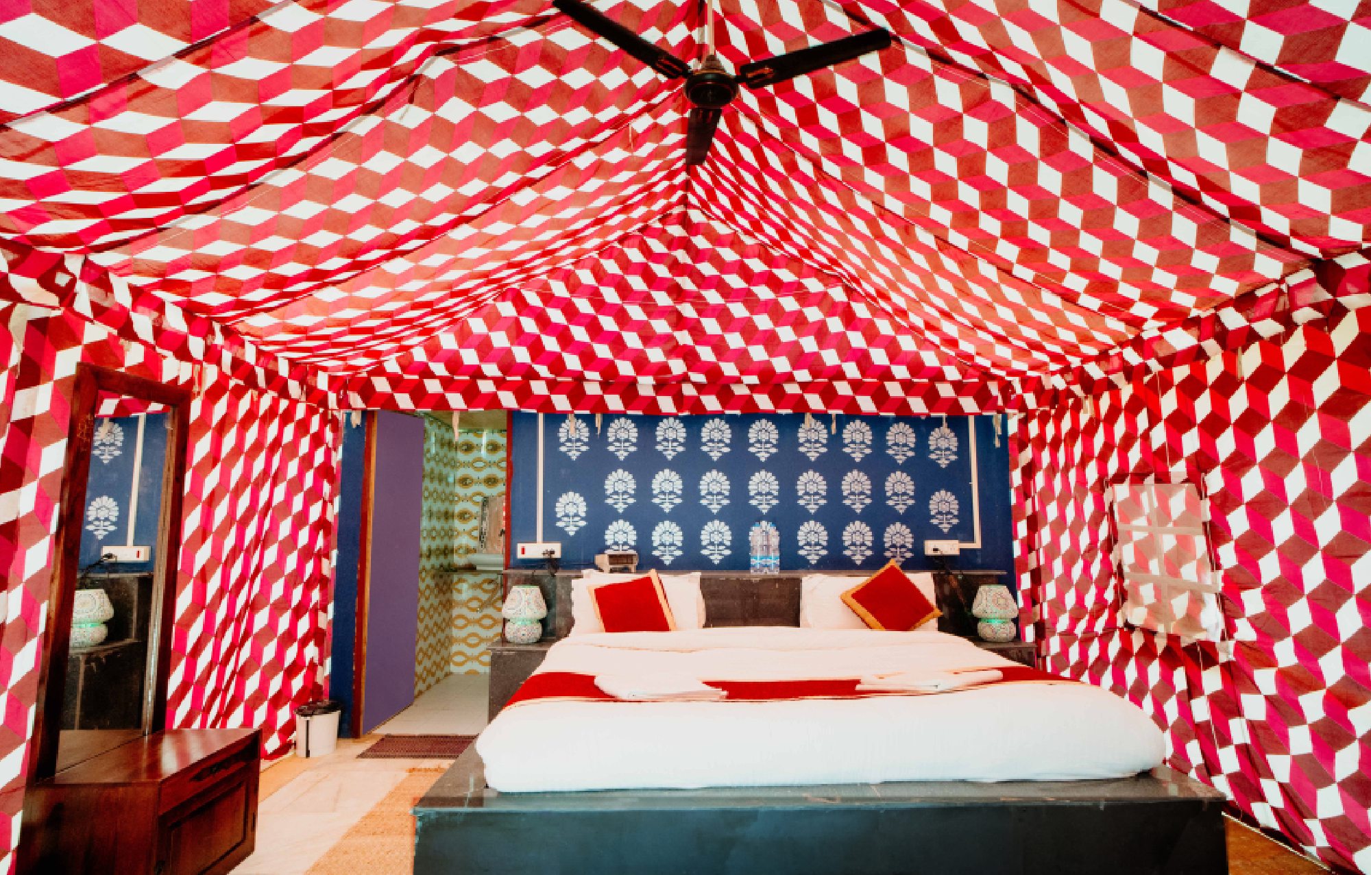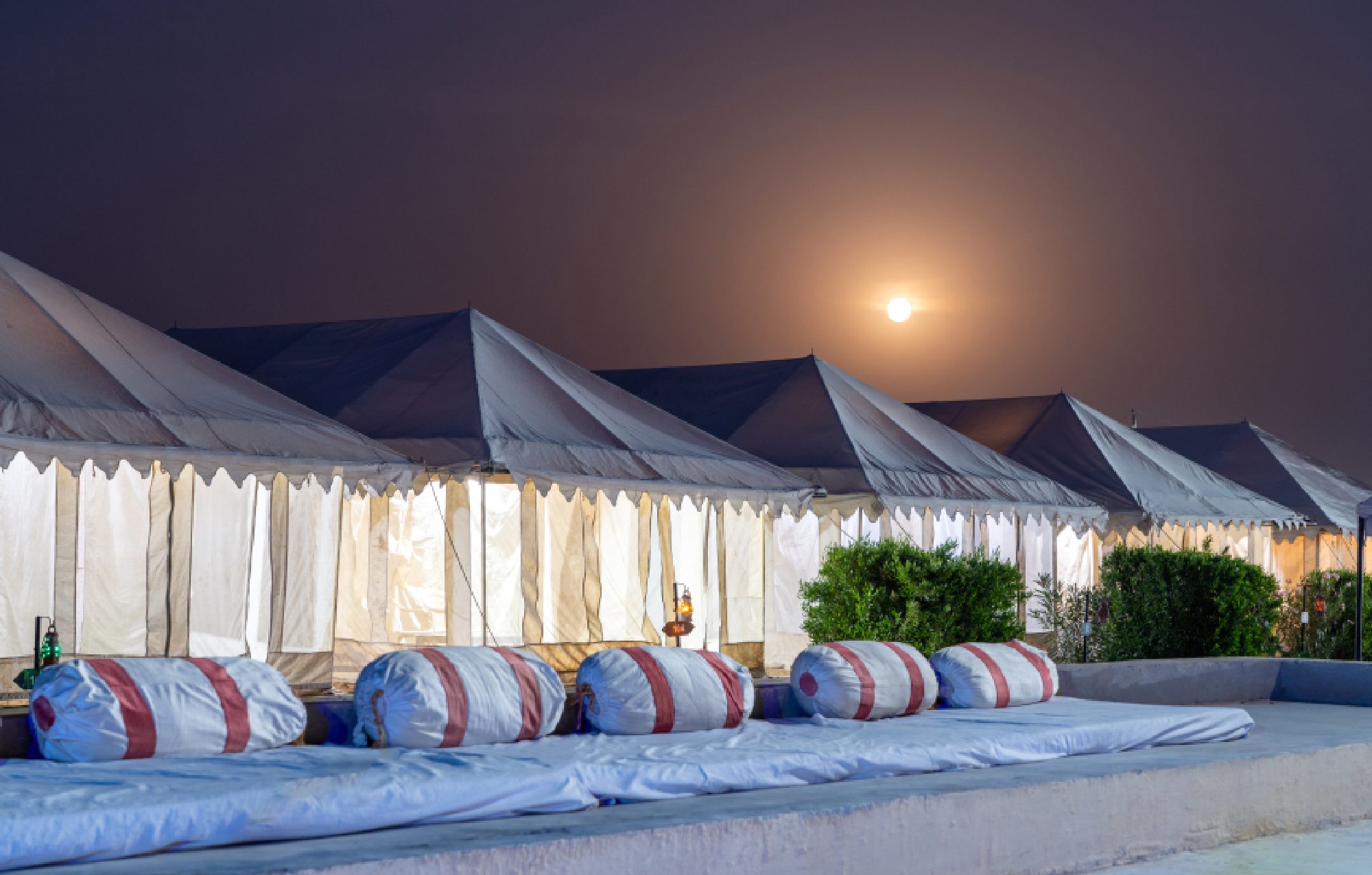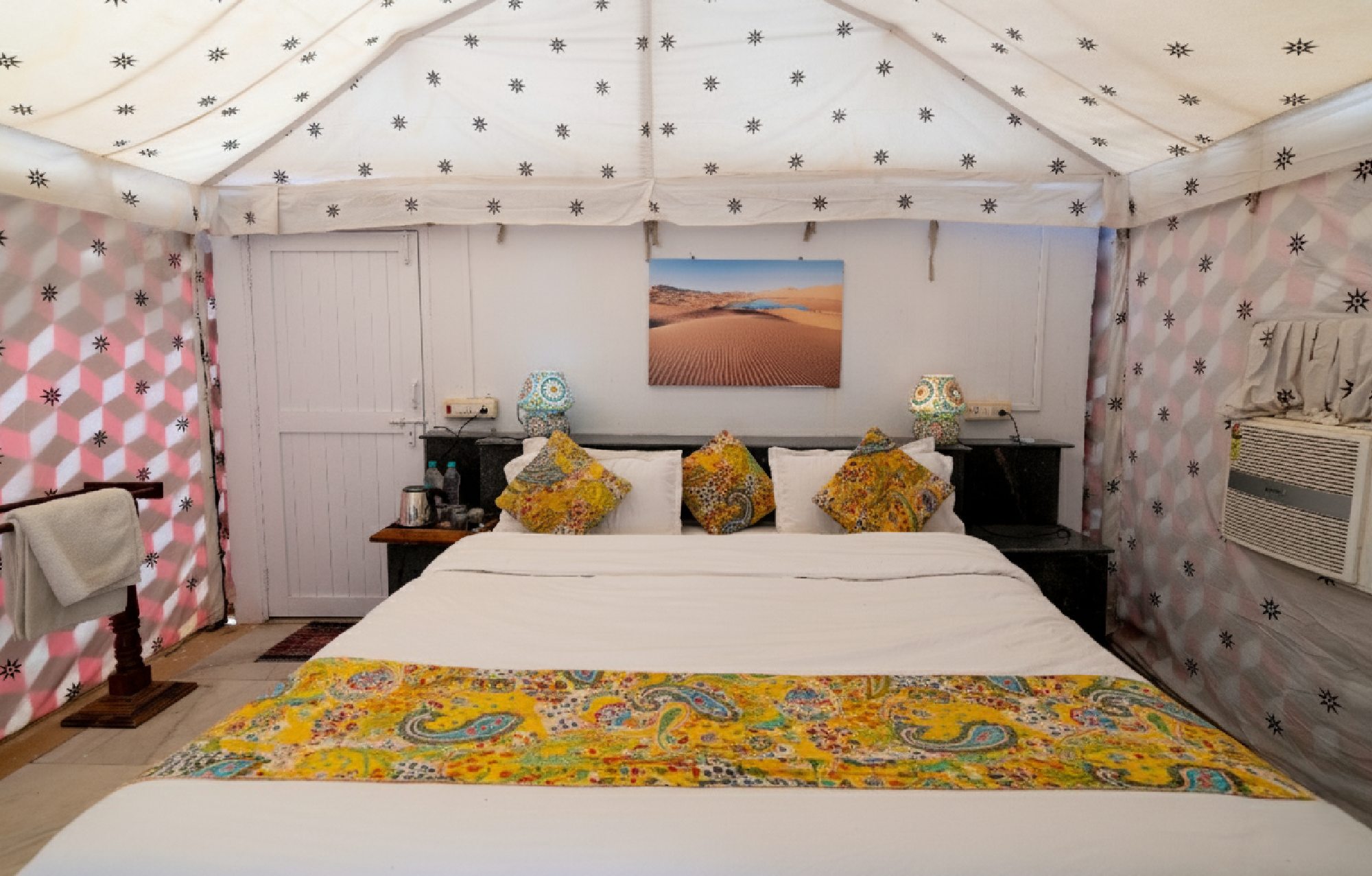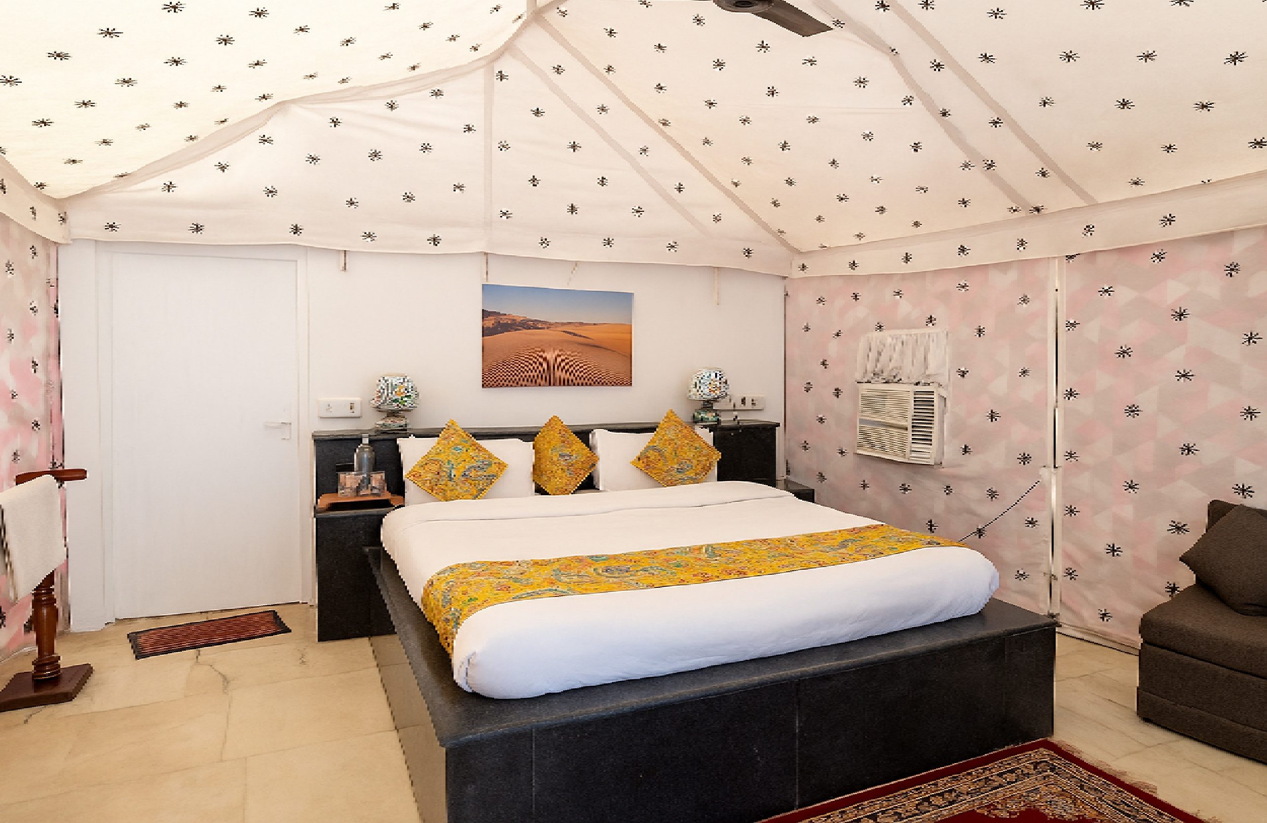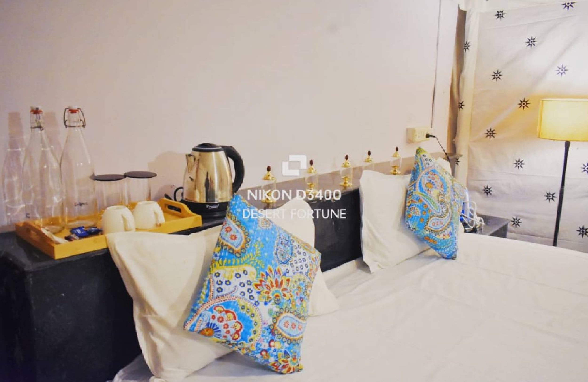 The Premium Luxury Tent redefines desert camping by combining the natural beauty of Rajasthan with ultimate comfort. Perfect for guests who want indulgence and exclusivity, these tents come with all amenities of the Executive Tent plus a private bathtub and a room heater. The bathtub allows you to soak and relax after adventurous desert safaris, while the room heater keeps you warm during chilly desert nights. With spacious interiors, refined furnishings, and modern conveniences, the Premium Luxury Tent is ideal for honeymooners, luxury seekers, or anyone looking for a memorable desert retreat.